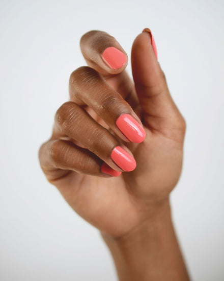 Grapefruit Pink nail polish swatch on dark skin tone by Sienna Byron Bay