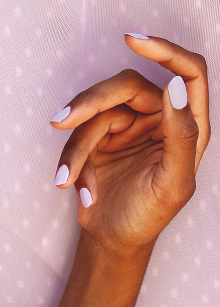 A whisper of lilac celebrates the skies of that magical period between day and night. Subtle light lilac pastel crème for every day nails.